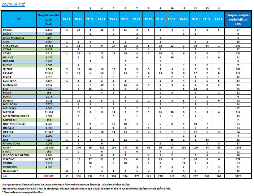 29.11.2020 Općinski načelnik OBAVIJESTI-Korona Virus COVID-19 Broj zaraženih na području Općine Lokve i PGŽ na dan 29.11.2020. ← Prethodna Natječaj za prodaju nekretnina u vlasništvu Općine Lokve putem prikupljanja pismenih ponuda- Poslovna zona Sleme Sljedeća → Broj zaraženih na području Općine Lokve i PGŽ na dan 02.12.2020.