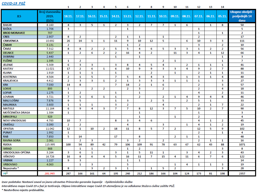 19.11.2020 Općinski načelnik OBAVIJESTI-Korona Virus COVID-19 Broj zaraženih na području Općine Lokve na dan 18.11.2020. ← Prethodna Nužne epidemiološke mjere za područje Primorsko-goranske županije Sljedeća → Broj zaraženih na području Općine Lokve i PGŽ na dan 22.11.2020.