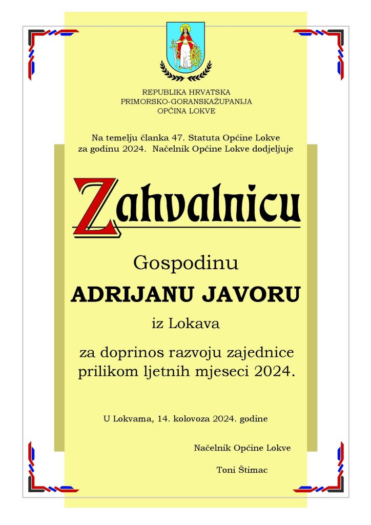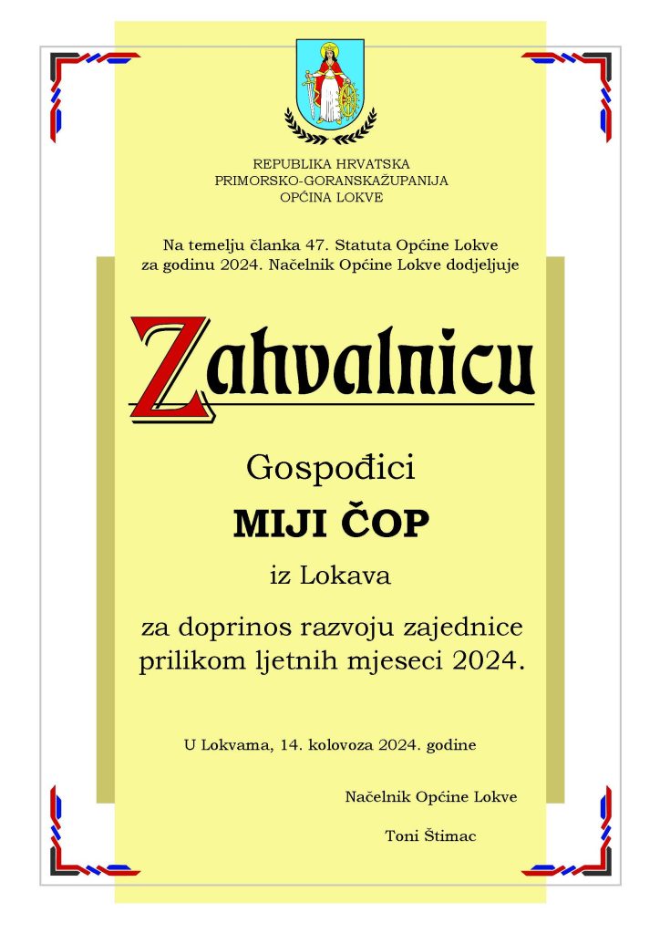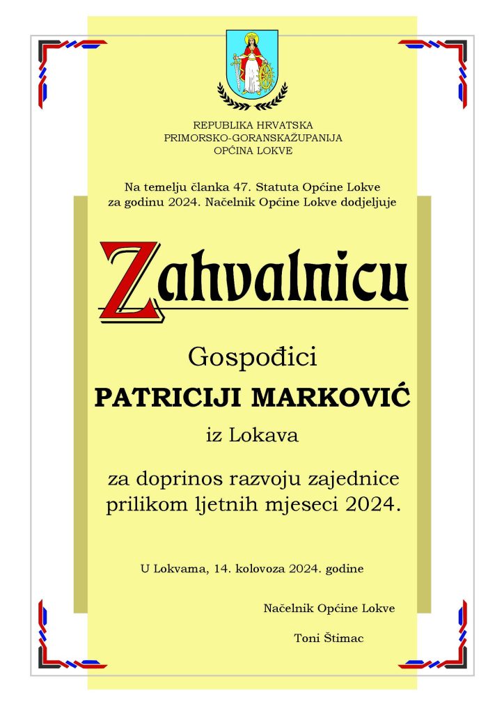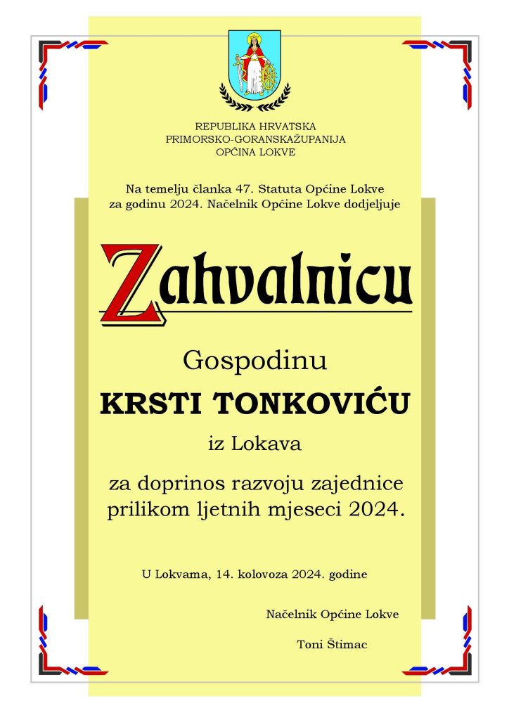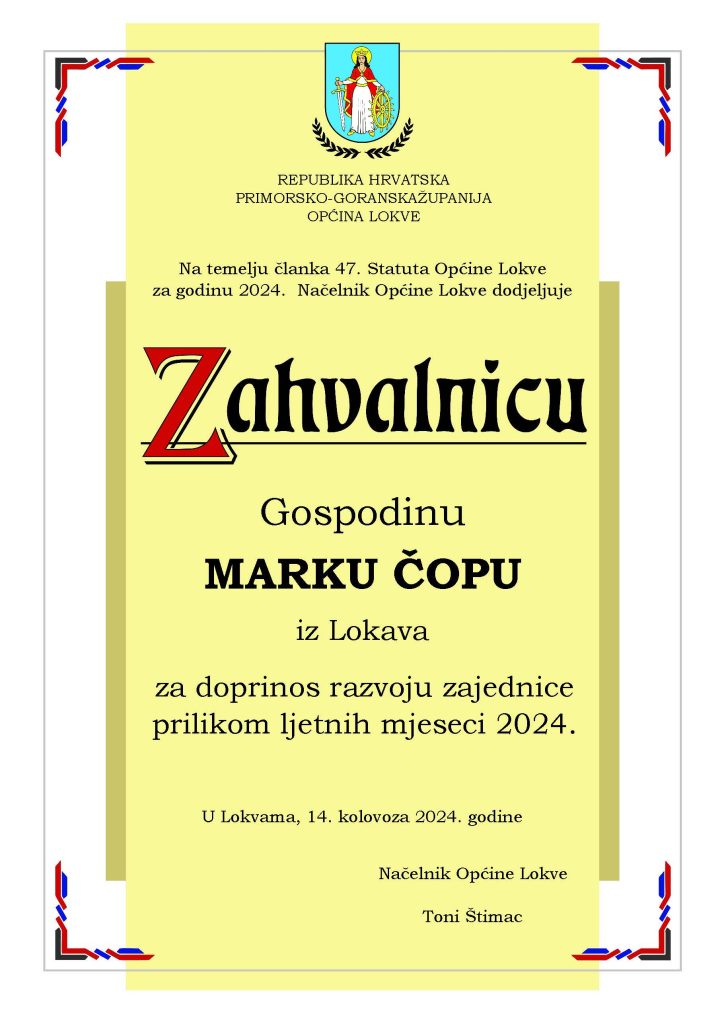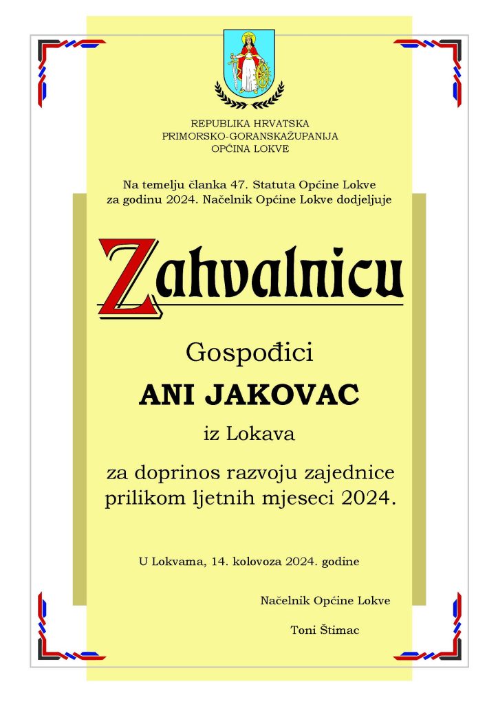 Program svečanosti vodila je Slavica Kljaić, a u glazbenom dijelu programa nastupile su na violini Paulina Tuhtan te na trubi Ana Frida Starčević. Zabave i veselja bit će i narednih dana pa Lokvarci pozivaju sve ljude dobre volje da im se predstojećeg vikenda pridruže u brojnim priredbama kojima će biti obilježen Dan općine Lokve.