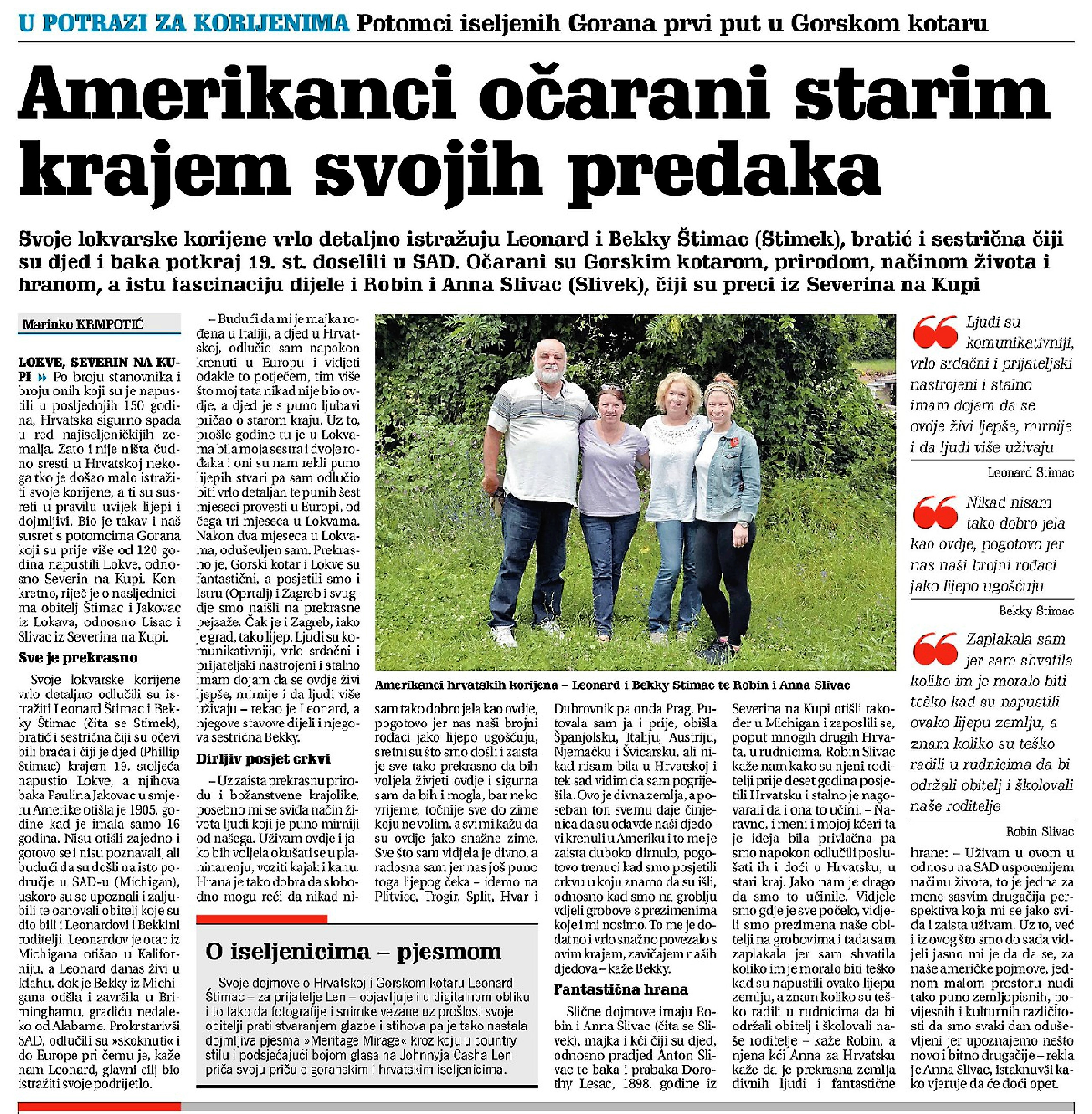 19.07.2018 Općinski načelnik Lokve u medijima , Vijesti Amerikanci očarani Lokvama ← Prethodna Javni poziv za dodjelu općinskih priznanja Općine Lokve Sljedeća → Žabarsko ljeto nudi još više događaja