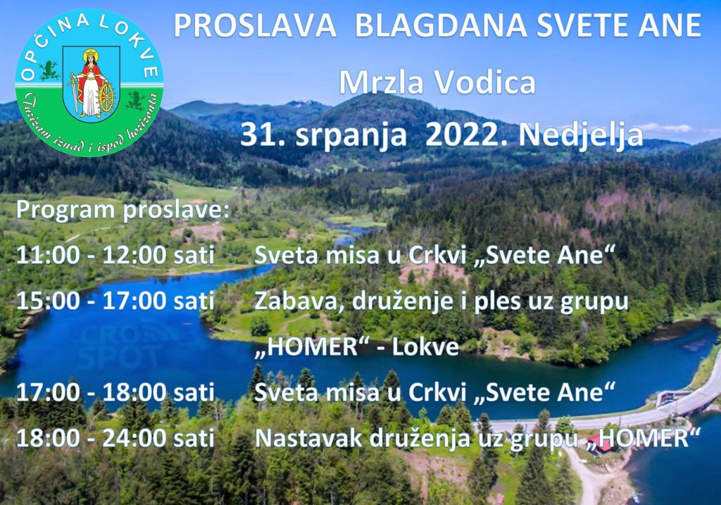 26.07.2022 Općinski načelnik Vijesti Blagdan Svete Ane-Mrzla Vodica ← Prethodna Opera na jezeru 2022. Sljedeća → OBAVIJEST O ZATVARANJU CESTE- Vidikovac – brana 30.7.2022 (Subota) od 8:00-16:00 sati