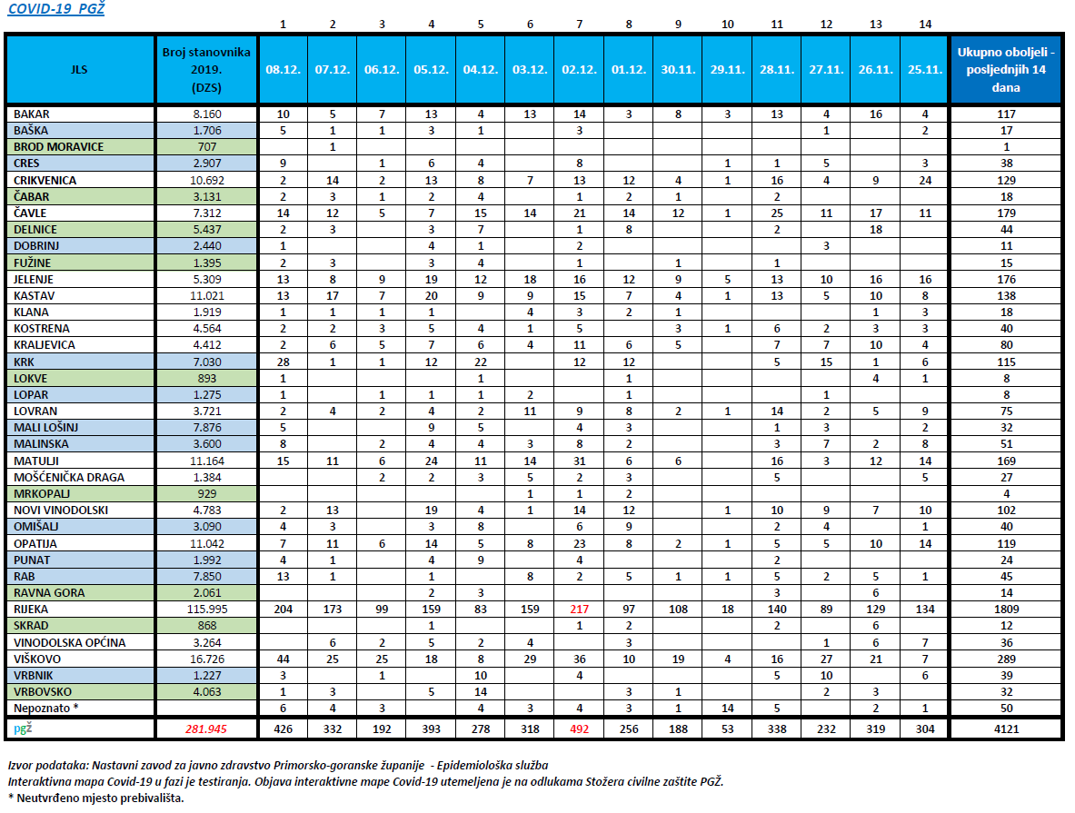 09.12.2020 Općinski načelnik OBAVIJESTI-Korona Virus COVID-19 , Vijesti Broj zaraženih na području Općine Lokve i PGŽ na dan 08.12.2020. ← Prethodna Broj zaraženih na području Općine Lokve i PGŽ na dan 04.12.2020. Sljedeća → PLAN KLASIFIKACIJSKIH OZNAKA OPĆINE LOKVE ZA 2021. GODINU