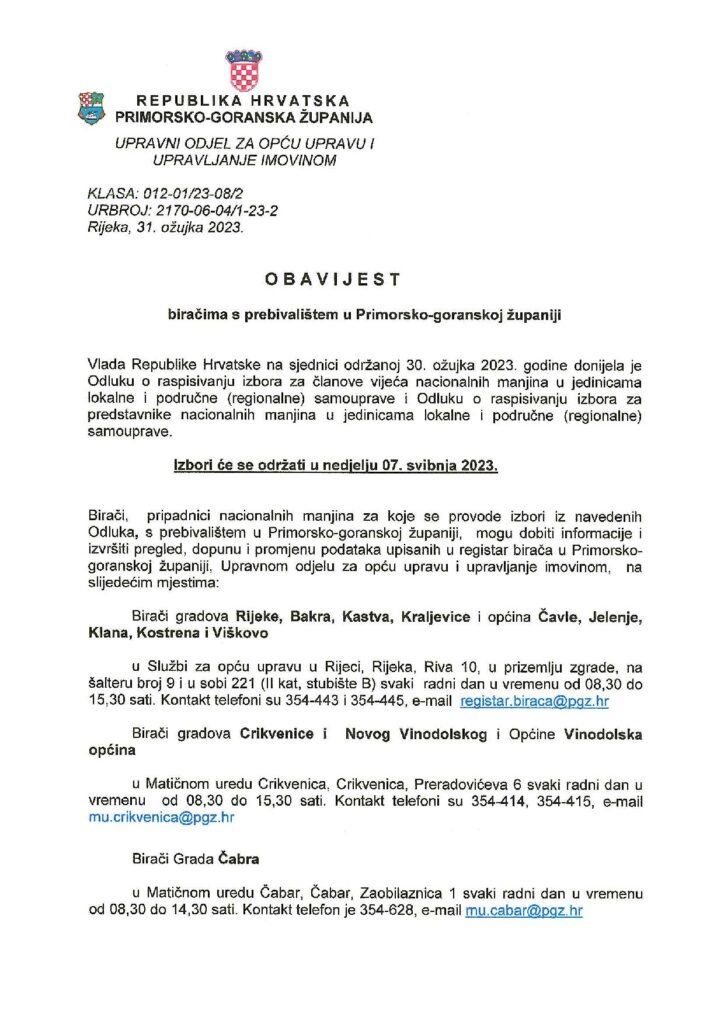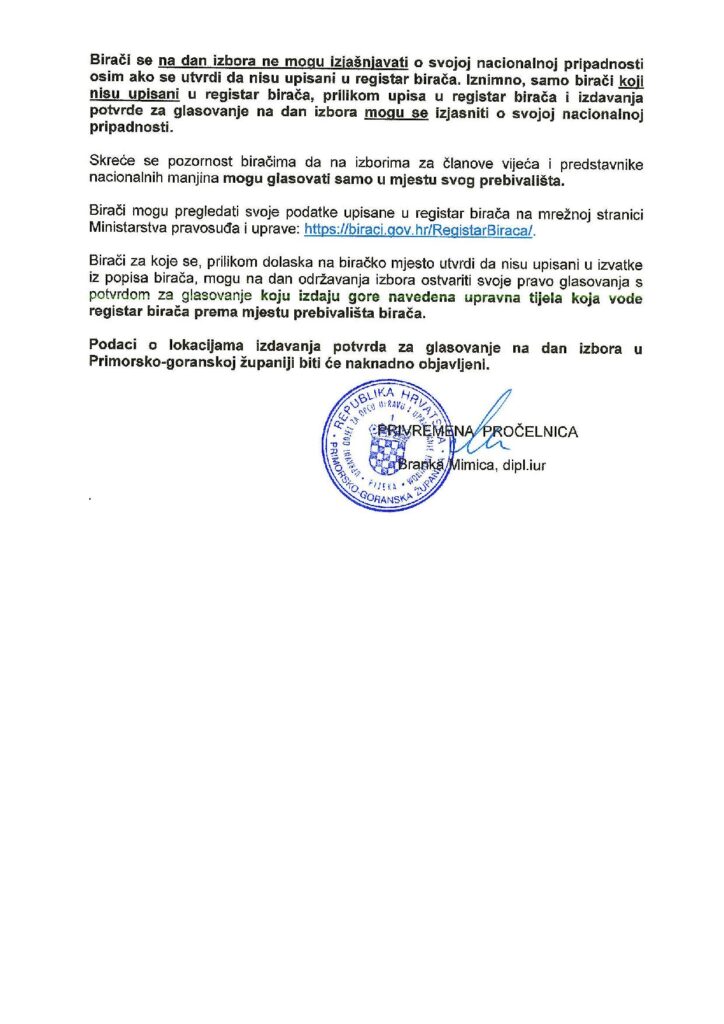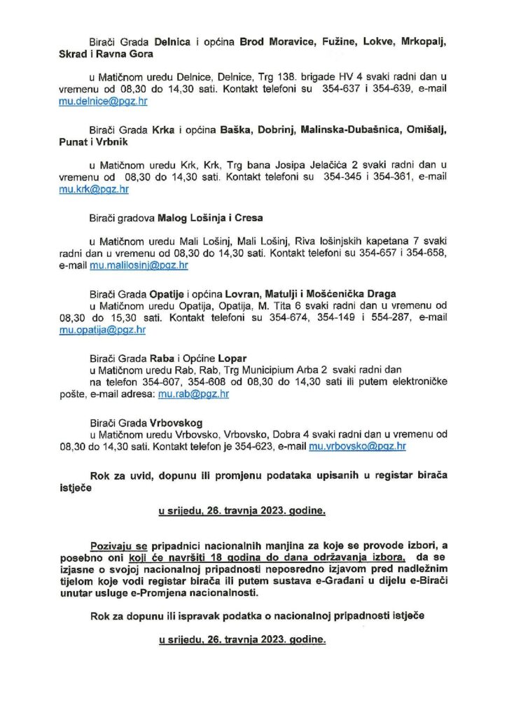 12.04.2023 Općinski načelnik Manjinski , Vijesti Izbori za manjine JLPRS 2023. Informacije-za-pripadnike-nacionalnih-manjina-PGZ_izbori-7.5.2023Preuzmi Obavijesti-biracima-s-prebivalistem-u-PGZ-manjinski-izboriPreuzmi Uputa-za-provjeru_promjenu-podataka-u-registru-biracaPreuzmi Privitak / dokumenti (3) Informacije-za-pripadnike-nacionalnih-manjina-PGZ_izbori-7.5.2023_svima 215 KB PDF Obavijesti-biracima-s-prebivalistem-u-PGZ-manjinski-izbori 1.1 MB PDF Uputa-za-provjeru_promjenu-podataka-u-registru-biraca_30_3_2023 538 KB PDF ← Prethodna Poziv na javni uvid – Program gospodarenja gospodarskom jedinicom ”Suha Rečina” s planom upravljanja područjem ekološke mreže (Plan upravljanja) šumarije Crni Lug Sljedeća → Obavijest o nadmetanju za postupak: MODERNIZACIJA SUSTAVA JAVNE RASVJETE NA PODRUČJU OPĆINE LOKVE