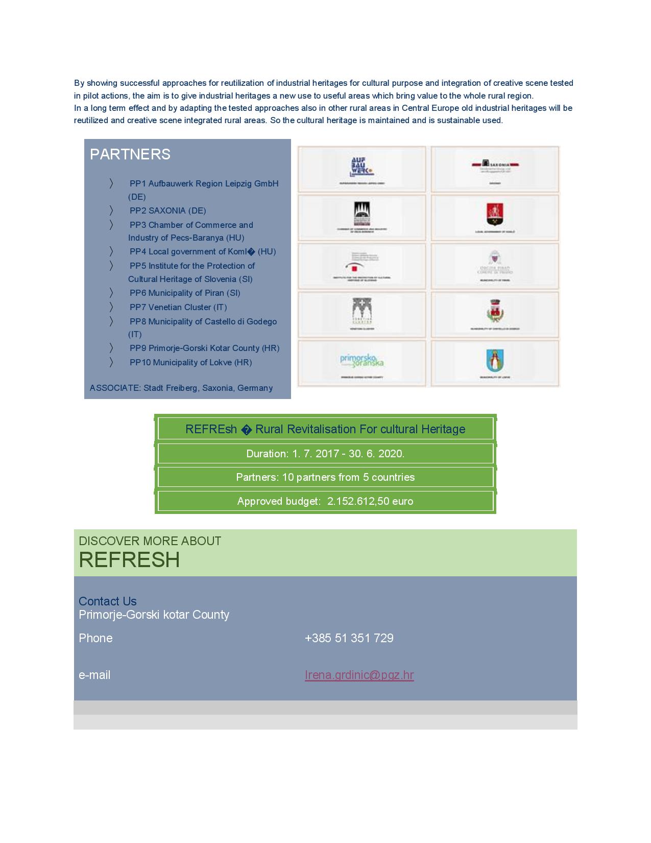 18.10.2019 Općinski načelnik REFREsh , Vijesti NEWSLETTER No. 5 ← Prethodna Novi list 11.10.2019. Sljedeća → IZVJEŠTAJ S PETOG PARTNERSKOG SASTANKA U OKVIRU PROJEKTA REFREsh