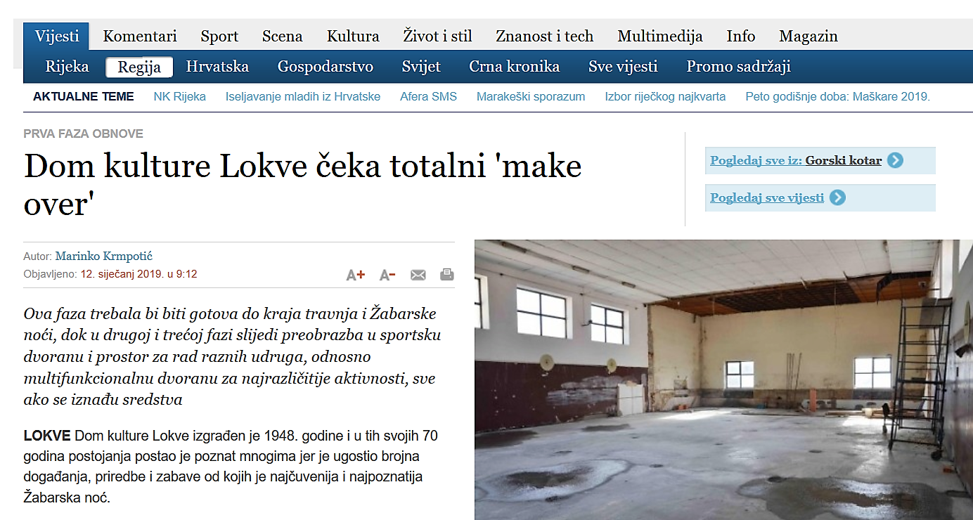 17.01.2019 Općinski načelnik Lokve u medijima , Vijesti Novi List – 12.1.2019 http://novilist.hr/Vijesti/Regija/node_1588/Dom-kulture-Lokve-ceka-totalni-make-over ← Prethodna Novi list-17.1.2019. Sljedeća → PLAN prijema u službu Jedinstvenog upravnog odjela Općine Lokve za 2019. godinu
