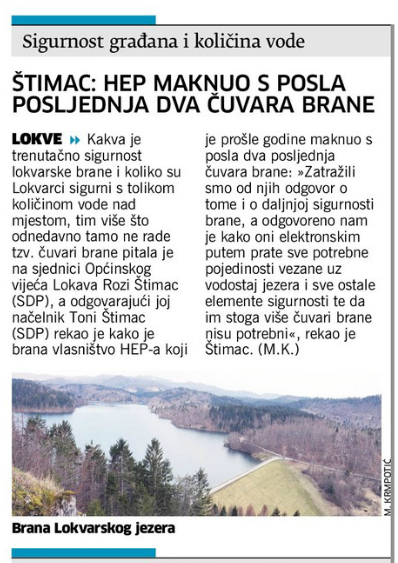 12.04.2016 Općinski načelnik Lokve u medijima , Vijesti Novi list – Sigurnost brane ← Prethodna Novi List – Strohalovi dani -Znameniti Gorani u leksikonu Sljedeća → Novi list – 71 godišnjica oslobođenja Lokava