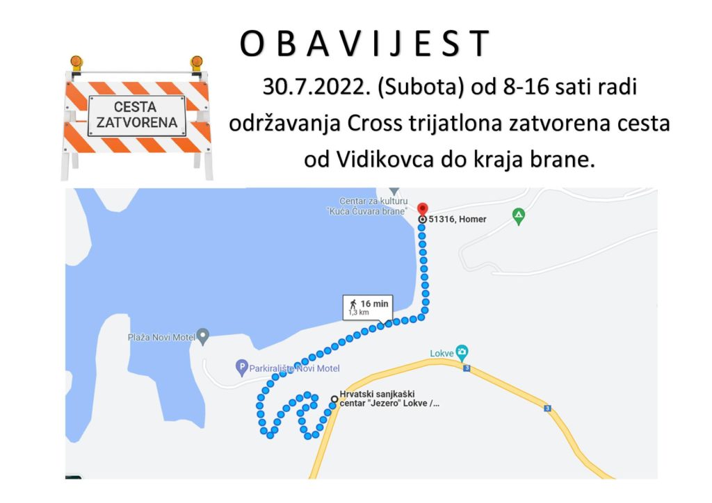 28.07.2022 Općinski načelnik Vijesti OBAVIJEST O ZATVARANJU CESTE- Vidikovac – brana 30.7.2022 (Subota) od 8:00-16:00 sati ← Prethodna Blagdan Svete Ane-Mrzla Vodica Sljedeća → POZIV NA INFORMATIVNU RADIONICU ZA PODUZETNIKE I POLJOPRIVREDNA GOSPODARSTVA