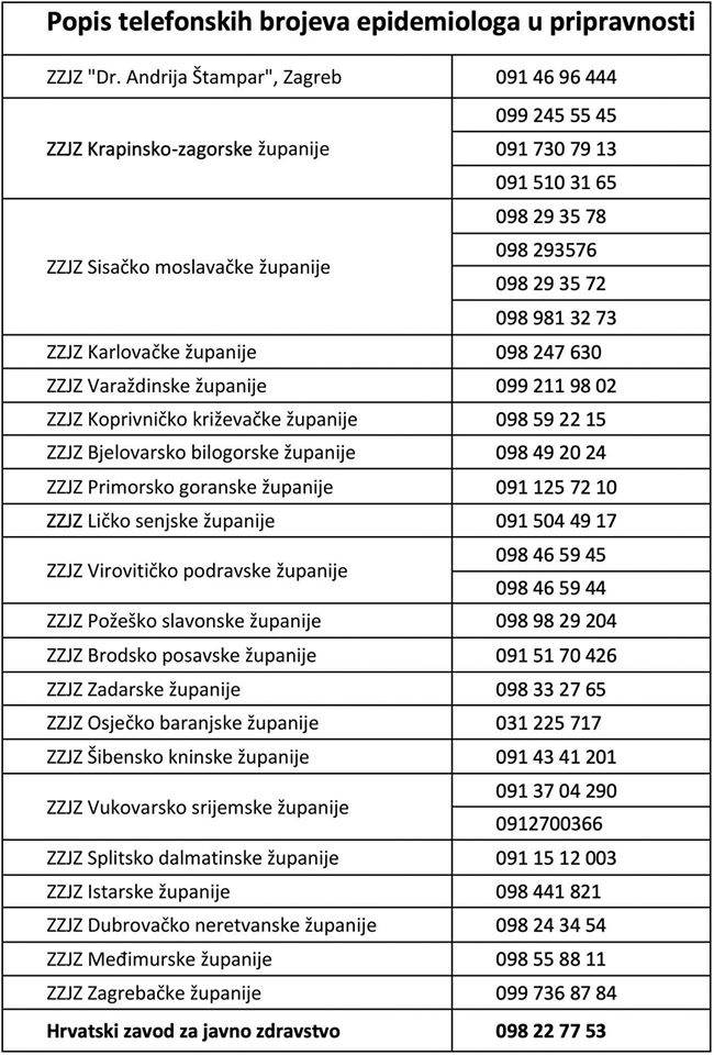 12.03.2020 Općinski načelnik OBAVIJESTI-Korona Virus COVID-19 , Vijesti Popis telefonskih brojeva epidemiologa u pripravnosti ← Prethodna Informativni letak Općine Lokve Korona Virus Sljedeća → Obavijest o privremenom zatvaranju programa predškolskog odgoja pri O.Š. Rudolfa Strohal