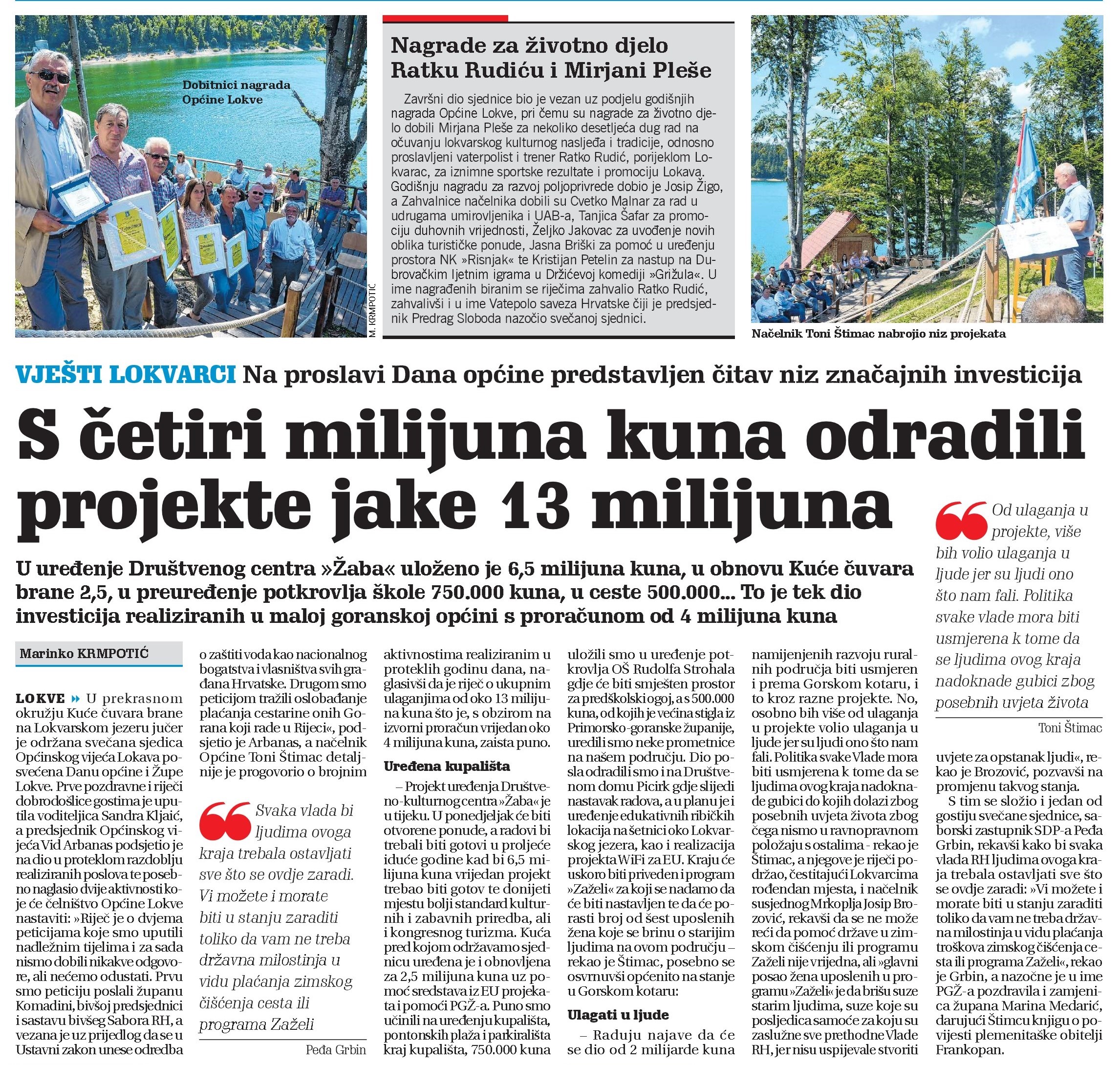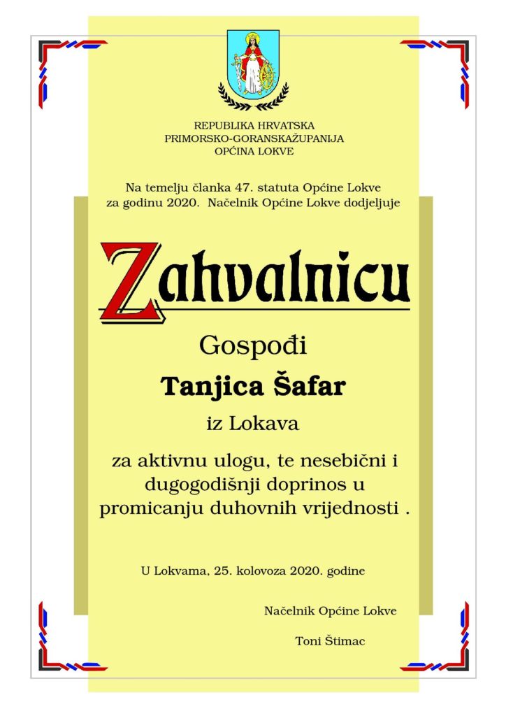 04.09.2020 Općinski načelnik Lokve u medijima , Svečane sjednice , Vijesti Svečana sjednica Općine Lokve 2020. Nagrade Općine Lokve za 2020. godinu. Mirjana Pleše Ratko Rudić Josip Žigo Cvetko Malnar Jasna Briški Krisitijan Petelin Željko Jakovac Tanjica Šafar ← Prethodna Javni poziv za financiranje programa i projekata udruga koje promiču poljoprivredu i vrijednost ruralnog prostora Republike Hrvatske za 2020. godinu Sljedeća → 23. SJEDNICA OPĆINSKOG VIJEĆA OPĆINE LOKVE